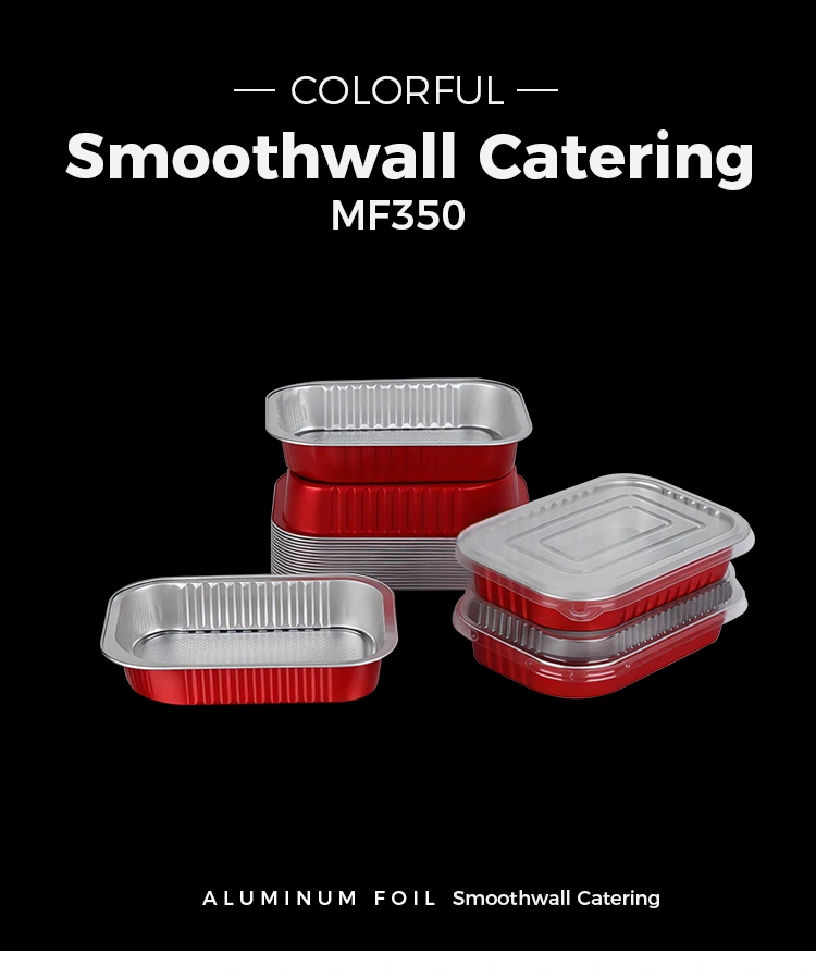 Recipientes de folha de alumínio quadrados vermelhos com vedação descartável para catering