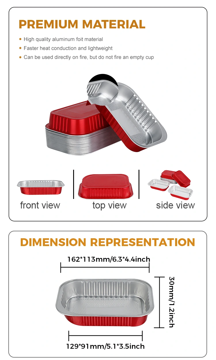 -O material do Recipiente Retangular de Alumínio Vermelho pode travar o frescor e o frescor dos alimentos. Suas excelentes propriedades de condução de calor e isolamento permitem que seja aquecido diretamente no forno, micro-ondas e refrigerado na geladeira, fixando efetivamente o sabor original da refeição e mantendo o sabor ideal por muito tempo.