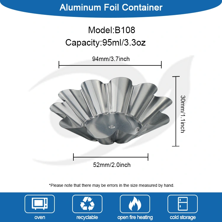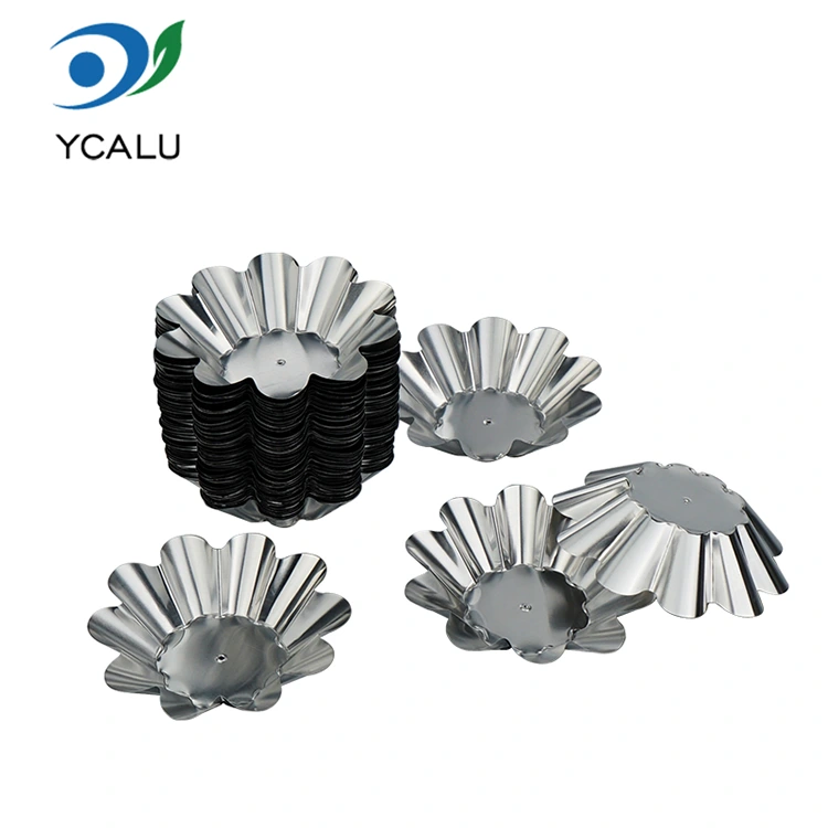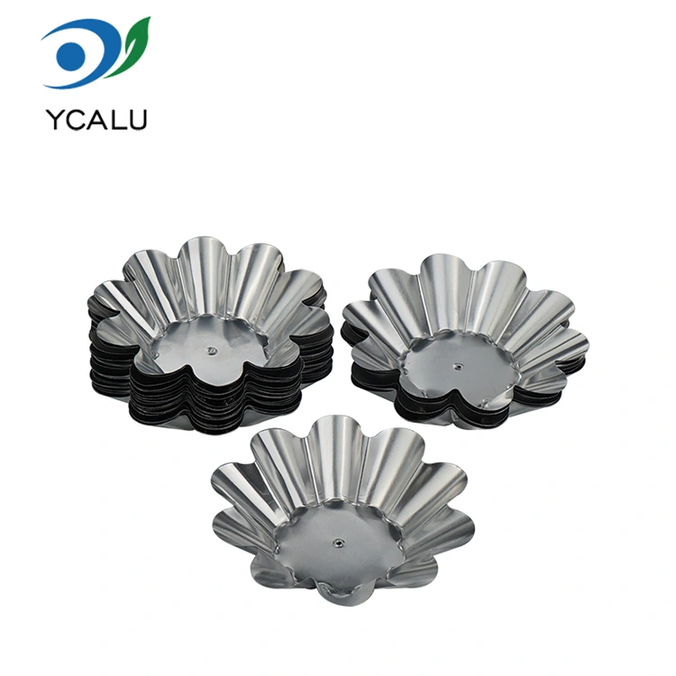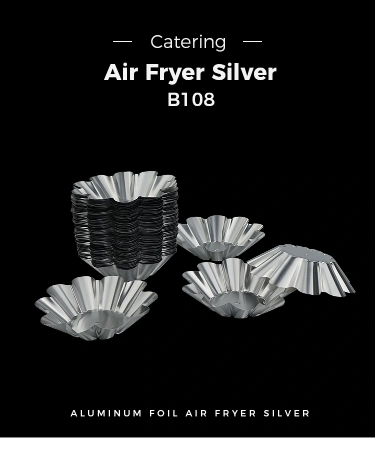 O recipiente descartável de folha de alumínio prateado da bandeja de torta de ovo de crisântemo do fornecedor de folha de alumínio Yunchu usa folha de alumínio de qualidade alimentar que atende aos padrões de teste da SGS. Não possui metais pesados, nem odor e propriedades químicas estáveis. A densa camada de óxido na superfície pode isolar efetivamente a reação entre o alimento e o recipiente. Não produzirá substâncias nocivas e pode estar em contato direto com todos os tipos de alimentos. Quer se trate de cozimento em alta temperatura ou refrigeração em baixa temperatura, a segurança alimentar pode ser garantida. O design clássico de renda em copo de crisântemo tem linhas suaves e delicadas e formato regular. Não requer modificação adicional após o cozimento. Possui uma textura delicada, que realça instantaneamente o nível dos pastéis de ovo e dos salgadinhos. Quer se trate de partilha familiar, jantar de férias ou jantar de negócios, pode ser facilmente distinguido. O corpo do copo é estampado em uma única peça, sem folgas de emenda, e o fundo é plano e estável, dificultando a queda quando colocado na assadeira ou no forno.