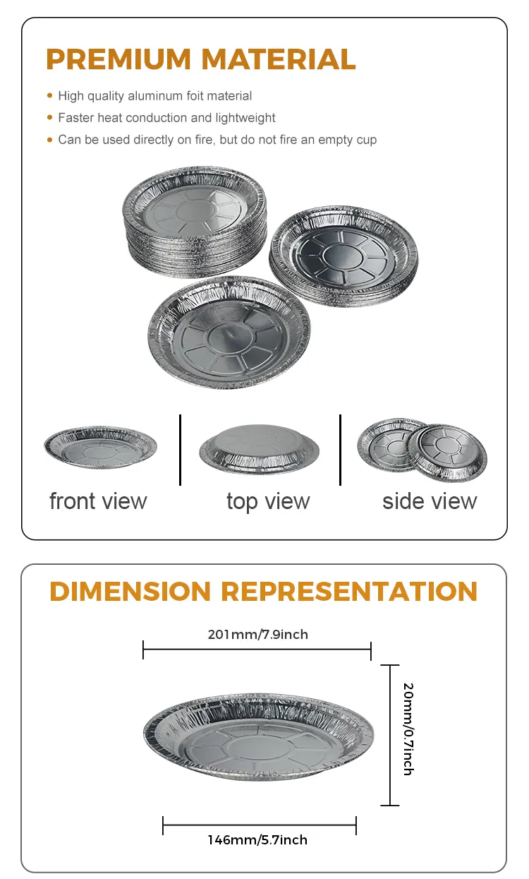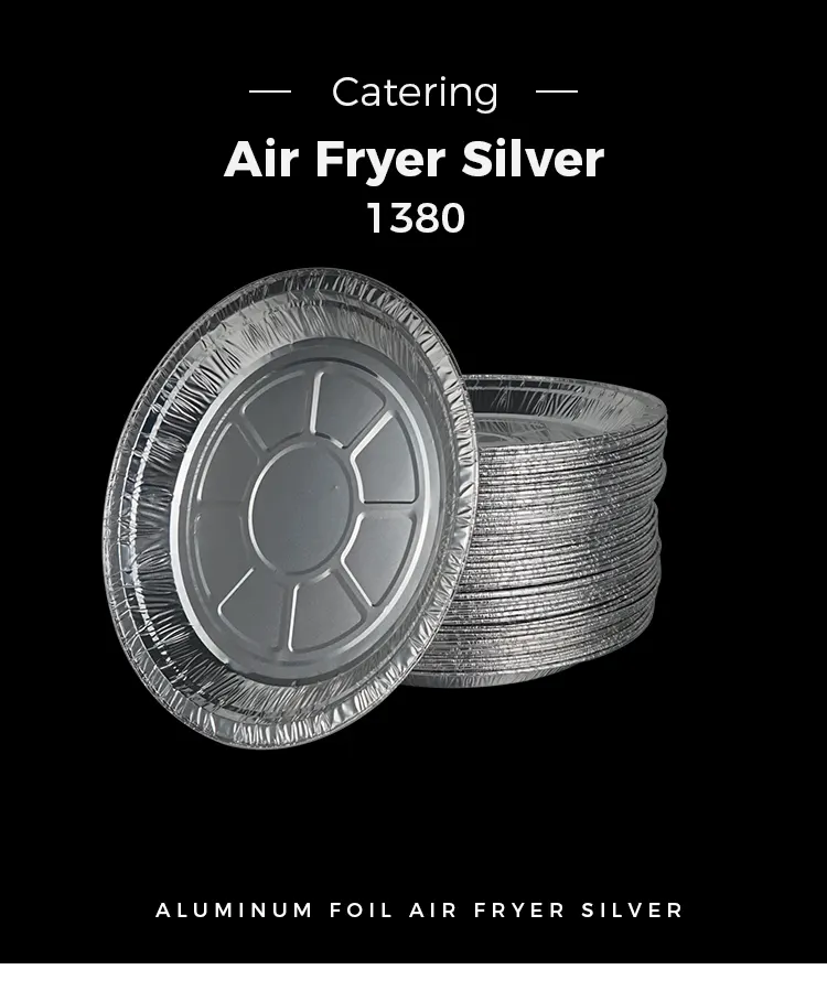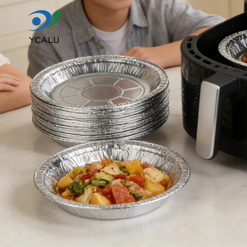 Disco descartável de folha de alumínio Yunchu Fritadeira de ar Recipiente de folha de alumínio prateado A folha de alumínio de alta pureza de qualidade alimentar não tem impurezas e odor e está em conformidade com os padrões nacionais de materiais para contato com alimentos. Pode entrar em contato direto com ingredientes crus e cozidos - seja churrasco marinado, refrescantes vegetais assados ​​ou sobremesas assadas macias, glutinosas e doces. Não há chance de infiltração de substâncias nocivas. A folha de alumínio prateado brilhante tem excelente condutividade térmica. O design do disco de peça única se adapta à maioria dos tamanhos de fritadeiras de ar comprimido. Disponível nos tamanhos de 6, 7 e 8 polegadas, é adequado para pequenas porções e para compartilhar com toda a família. Não há necessidade de ajustes repetidos. Pode ser facilmente colocado no cesto de fritar, permitindo aproveitar ao máximo as vantagens do material.