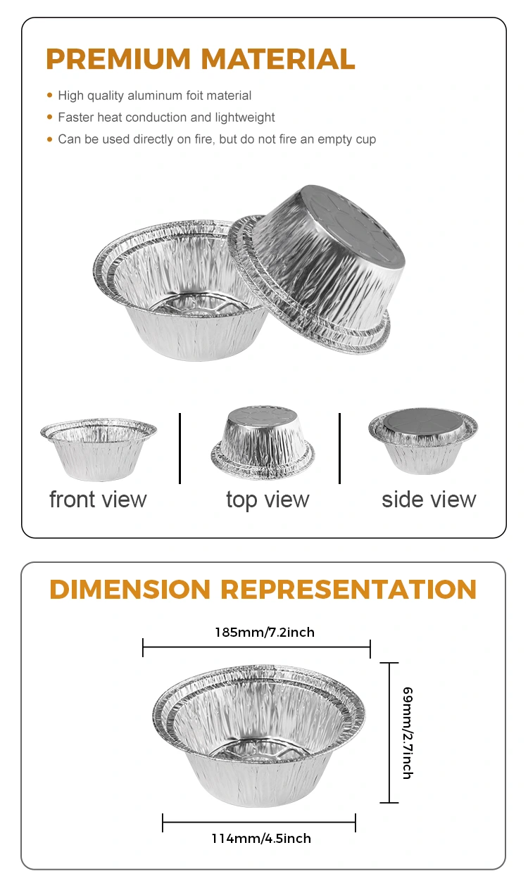 O recipiente de papel alumínio prateado para o tiro de gratinagem descartável em alumínio Yunchu tem um design único, leve e fácil de usar, pesando apenas 9,9 gramas, facilitando a empilhamento e a armazenamento, economizando espaço e tempo de colocação. O produto é fabricado usando um processo avançado de parede de luz com uma superfície lisa e plana, tornando -o ideal para rotular e digitalizar o trabalho após o processamento de alimentos em grandes supermercados. Sua capacidade espaçosa é suficiente para manter uma variedade de alimentos e lanches diários, atendendo a diversas necessidades de uso. Como produto descartável, não há necessidade de limpá -lo, reduzindo significativamente os custos de mão -de -obra. Além disso, o produto está equipado com a tampa de alumínio para animais de estimação e alumínio, que possui excelente vazamento de óleo e desempenho à prova d'água, e pode manter a estabilidade e a deformação em altas temperaturas, melhorando assim o efeito de preservação do frescor e preservação de calor dos alimentos, especialmente quando selados e transportados.