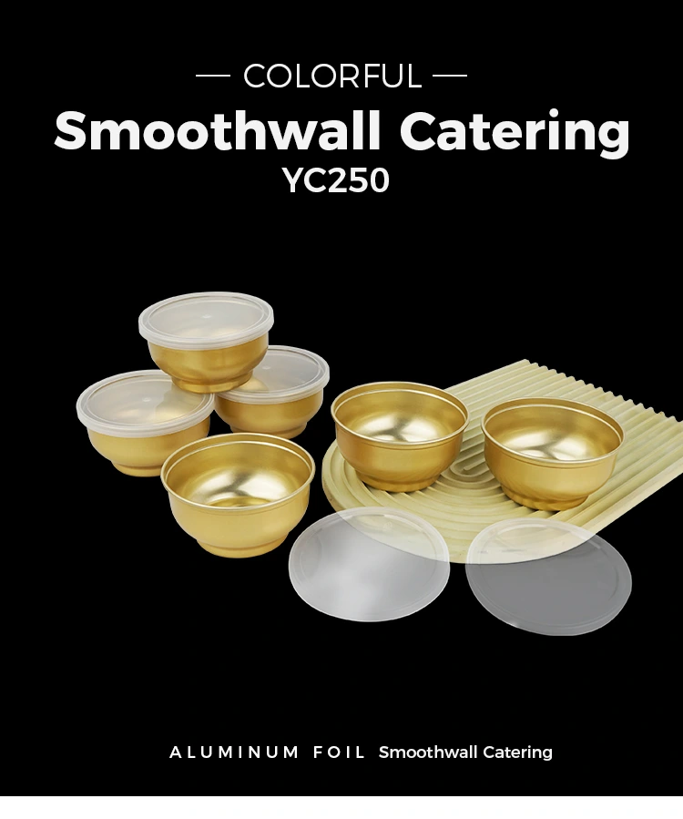 Fábrica de fabricação de folha de alumínio Yunchu, recipientes redondos descartáveis ​​​​de folha de alumínio para tigela pequena de ouro, um recipiente de folha de alumínio tipo tigela de formato exclusivo, este recipiente é voltado para embalagens, refeições pré-cozidas, arroz, macarrão, etc. Tigelas embaladas individualmente não são propensas a danos à pele, fáceis de transportar, feitas de materiais selecionados, resistentes e duráveis, embaladas individualmente, esterilizadas a vácuo, fáceis de abrir e comer, capazes de manter o frescor durante o cozimento a 121°C. A tigela original não pode ser aquecida no microondas. Disponíveis em diversas especificações, empilháveis ​​para armazenamento, as tigelas de alumínio podem ser empilhadas para manter a cozinha arrumada e organizada. Tamanhos diferentes atendem a diversas necessidades de embalagem – uma tigela de cada vez é a ideal.