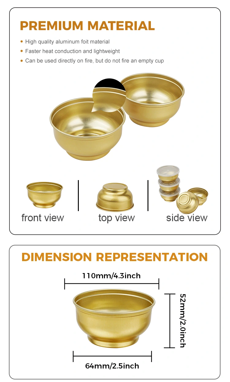 Recipientes descartáveis ​​redondos pequenos de folha de alumínio com tigela de ouro