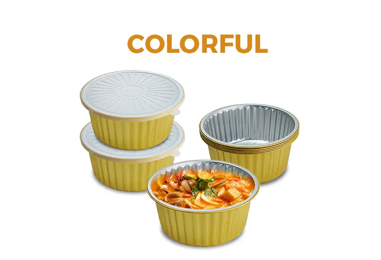 Yunchu Supplier This Disposable Sealable Golden Round Aluminum Foil Containers can provide high-temperature resistant translucent PP lid, laminated heat-sealing aluminum foil lid is optional, and adopts dust-proof and leak-proof safety for the container mouth, which is suitable for pre-made dishes, refrigerated food storage, soup ingredients, etc. This Disposable Sealable Golden Round Aluminum Foil Containers is suitable for most Cozimento de grande volume, e temos um serviço personalizado, que pode personalizar o logotipo, a impressão de padrões etc. para mostrar a identidade da marca.