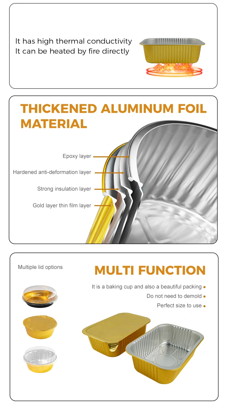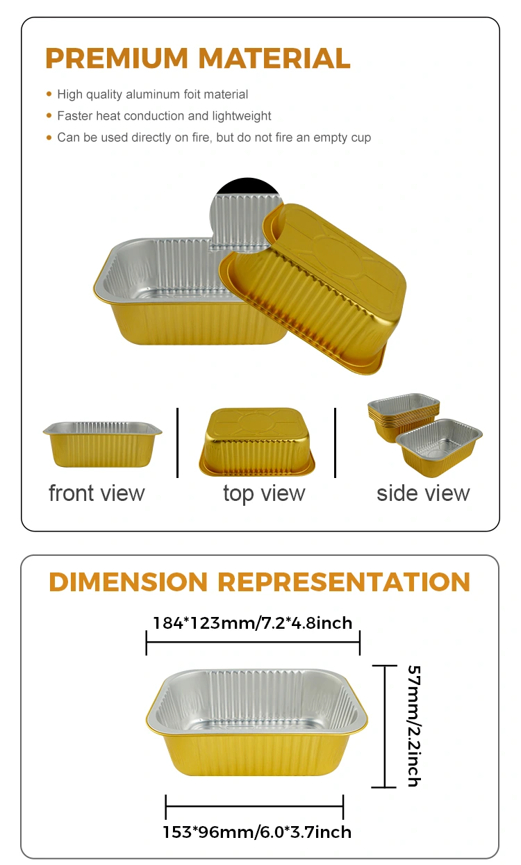 O fornecedor de alumínio de alumínio Yunchu, selo quadrado de alumínio quadrado, os recipientes de alumínio gratinado são cuidadosamente feitos de material de papel alumínio de alta qualidade, que pode ser usado com tampa de vedação de alumínio, que possui excelente desempenho de vedação, resistência a alta temperatura e resistência ao vazamento. É amplamente utilizado em vários cenários, como embalagem de alimentos, aquecimento, refrigeração e entrega de viagem. A superfície é projetada com uma parede clara e a aparência é plana e suave, o que é conveniente para a vedação automática do filme de vedação de calor, de modo a melhorar a eficiência da embalagem.