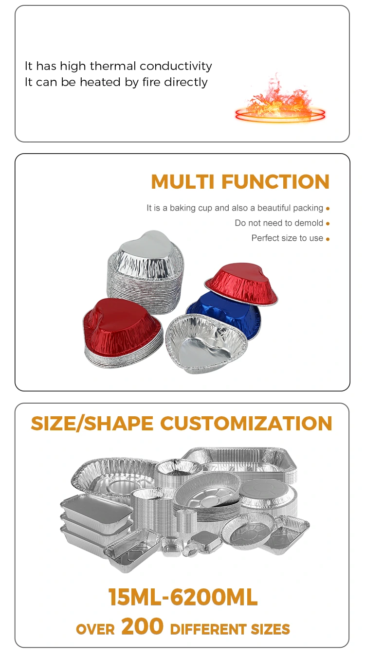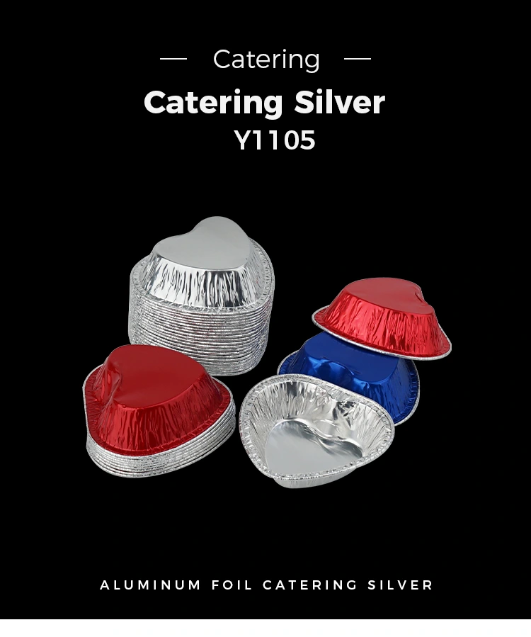 O recipiente de folha de alumínio prateado da fritadeira de ar em forma de coração do fornecedor de folha de alumínio Yunchu é adequado para várias cenas. Este recipiente de folha de alumínio em forma de coração é prático e adaptável a diversos cenários da vida, cobrindo as três refeições do dia e os momentos de lazer.
