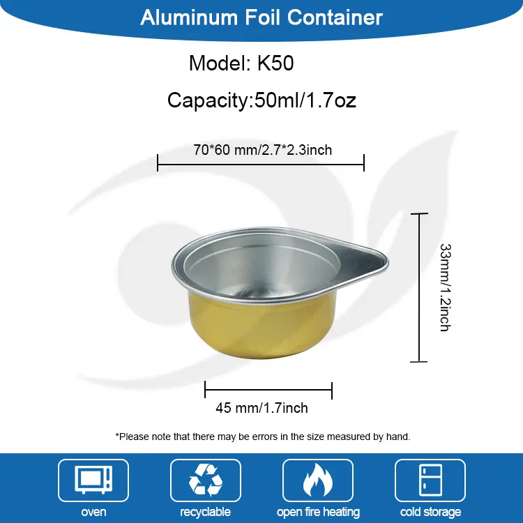 Fornecedor de folha de alumínio Yunchu K50 Cápsula de café vazia sem vedação de silicone com vedação térmica Parte superior: 70 * 60 mm, 2,7 * 2,3 polegadas, Base: 45 mm, 1,7 polegadas, Altura: 33 mm 1,2 polegadas, pode conter 50 ml de alimentos de 1,9 onças, pode ser aplicado a todas as cafeteiras Nespresso (nespresso), expresso em pó embalado ou enxaguado com nitrogênio para maior vida útil.