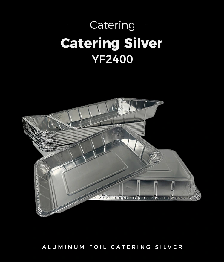 Yunchu Aluminum Foil Wholesale Model YF2400 Large grilled fish takeaway Silver Aluminum Foil Containers is suitable for all kinds of large baking equipment, such as baking ovens, retort boxes and barbecue grills, etc. This product is designed for disposable barbecue takeaway, can withstand high temperatures and make large cakes, suitable for placing food directly on the baking sheet for steaming, not only does not stick no prato e não é fácil de queimar, mas também pode entrar em contato diretamente com a chama aberta. O produto aprovou as certificações nacionais relevantes para garantir o uso seguro. Além disso, possui excelente resistência ao calor e pode permanecer estável em altas temperaturas, não é fácil de deformar ou rachaduras. Sofre um rigoroso teste interno para garantir a segurança e a confiabilidade do produto.