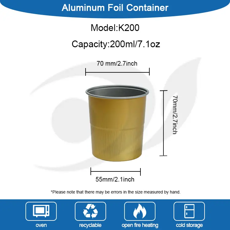 Yunchu Aluminum Foil Factory K120One-time camping Coffee Drinking Cup is made of high-quality food-grade materials, made of 8011 aluminum foil, non-toxic and tasteless, safe to use, the surface of the coffee cup adopts a modern design style, the bottom of the groove stands firmly, with a good anti-slip effect, you don't need to clean the coffee cup, you can choose to throw and recycle when you run out, fast heat conduction, both hot E bebidas frias e com truques, bebidas quentes também são muito boas e uniformes de dissipação de calor, a mão não é quente e confortável, camada e camada de armazenamento, economizando mais espaço, design de corpo cônico de copo, o design da parte superior e o fundo estreito é personalizado, o que melhor oferece aos consumidores uma escolha.