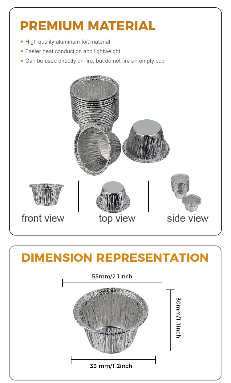 Para aplicações em forno doméstico, você pode usar copos de papel alumínio para fazer minibolos e pudins saudáveis ​​que seus filhos adoram comer. Não há necessidade de limpar a assadeira e é fácil de limpar após a refeição.