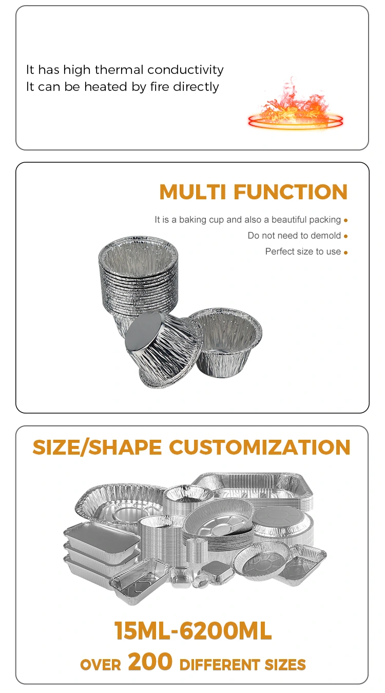 O recipiente de folha de alumínio prateado para bolo redondo pequeno do fabricante de folha de alumínio Yunchu usa folha de alumínio de qualidade alimentar 8011-O, que passou na certificação de segurança de contato com alimentos da FDA dos EUA e está em conformidade com os padrões de segurança de materiais de contato com alimentos da UE SGS. Após testes profissionais, não apresenta odor nem resíduos nocivos. Pode entrar em contato direto com todos os tipos de alimentos. Não é fácil deformar ou quebrar. É efetivamente à prova de vazamentos e antiaderente. Ele pode conter diretamente ingredientes líquidos, como massa de bolo, líquido de pudim, molho, etc. O design da borda externa laminada é anti-riscos, reduzindo o risco de arranhar as mãos. A faixa de resistência à temperatura cobre -40 ℃ a 220 ℃ e pode ser adaptada para fritadeiras, fornos, vaporizadores e fornos de micro-ondas (calor médio-baixo). Ele pode ser colocado diretamente na fritadeira para assar minibolos e tortas de ovo, e também pode ser usado para aquecer ingredientes congelados logo após o descongelamento, atendendo a uma variedade de necessidades de cozimento e panificação.
