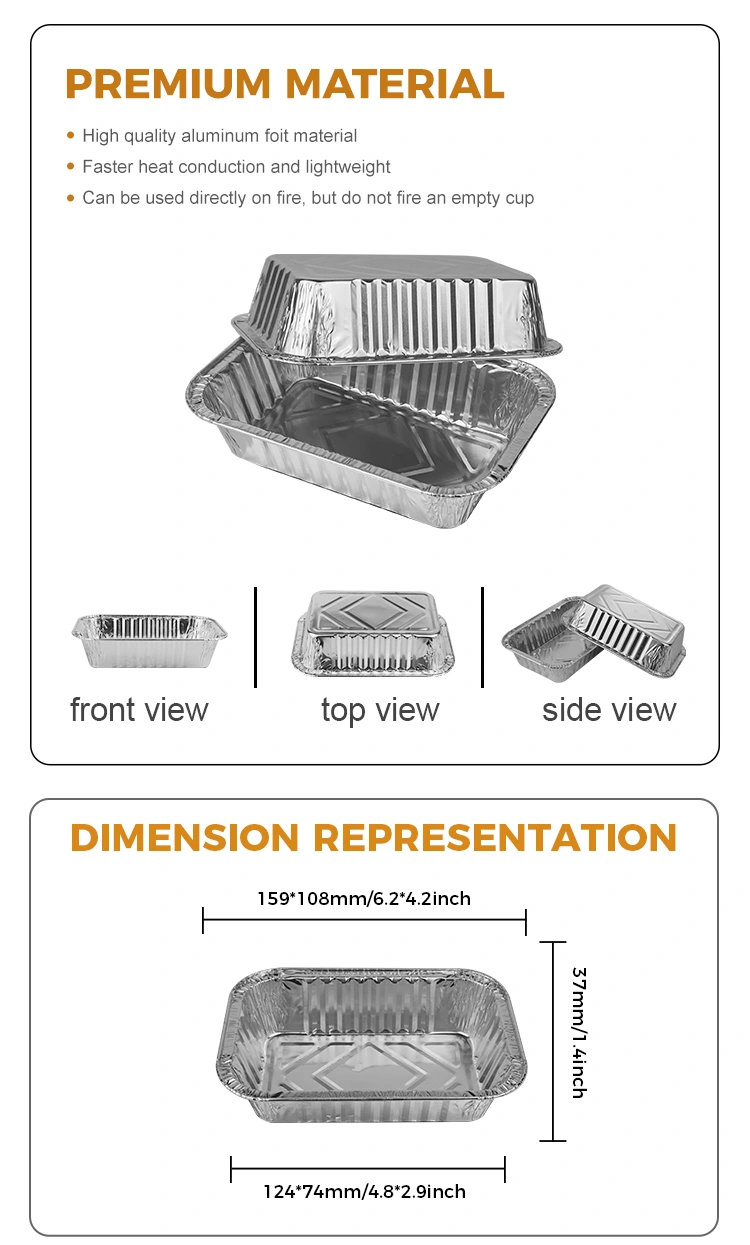 Modelo 2322 do fornecedor de folhas de alumínio Yunchu 2322 PAN PAN RECIMENTO DE FOLHA DE ALUMINA PRATA RETAGNULAR PAN é muito popular no mercado devido à sua excelente qualidade do produto e design exclusivo. A estrutura do produto é flexível para atender às necessidades de vários cenários e fornece serviços personalizados, incluindo o logotipo e a impressão de padrões, o que ajuda a aprimorar a imagem da marca. Além disso, o serviço de pedidos por atacado de capa de alumínio também é altamente preferido, com um único MOQ personalizado de 1000 peças.