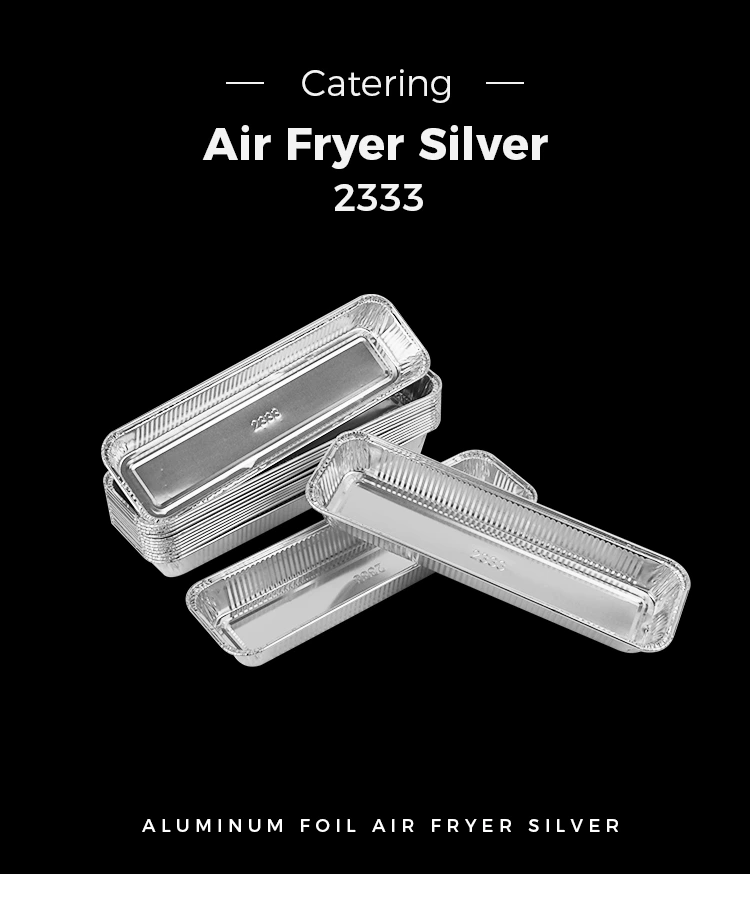 • Recipientes retangulares de fritadeira de fritadeira de ar de alumínio prateadoRecipientes retangulares de fritadeira de fritadeira de ar de alumínio prateado