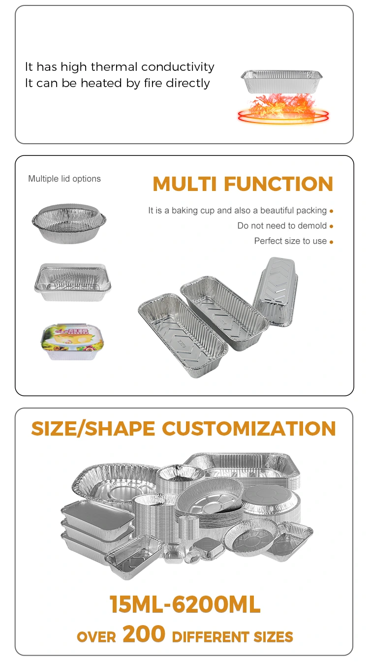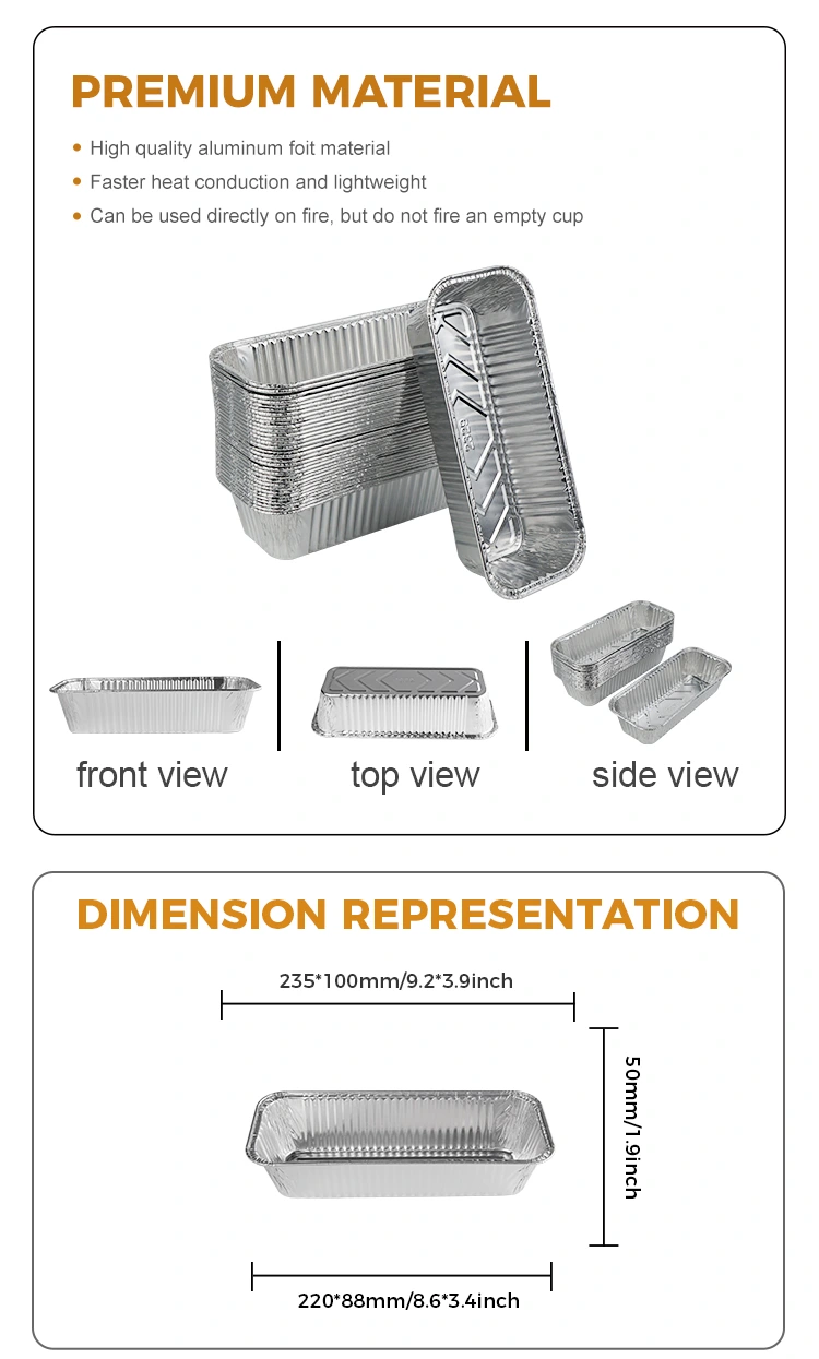 Este recipiente não é apenas resistente ao calor e resistente ao óleo, mas também muito fácil de assar, tornando-o especialmente adequado para uso em fritadeiras de ar e outros equipamentos. Simplesmente coloque comida ou sopa nele ao usá -la sem se preocupar com a secagem. Para os usuários domésticos, é ainda mais limpo e conveniente, com um design sem lavagem que facilita a limpeza. O recipiente retangular de alumínio em churrasco de churrasco retangular é um ajudante indispensável na sua cozinha. Seja para culinária diária ou ocasiões especiais, oferece a solução perfeita. Venha e compre para tornar sua vida de culinária mais conveniente e deliciosa!