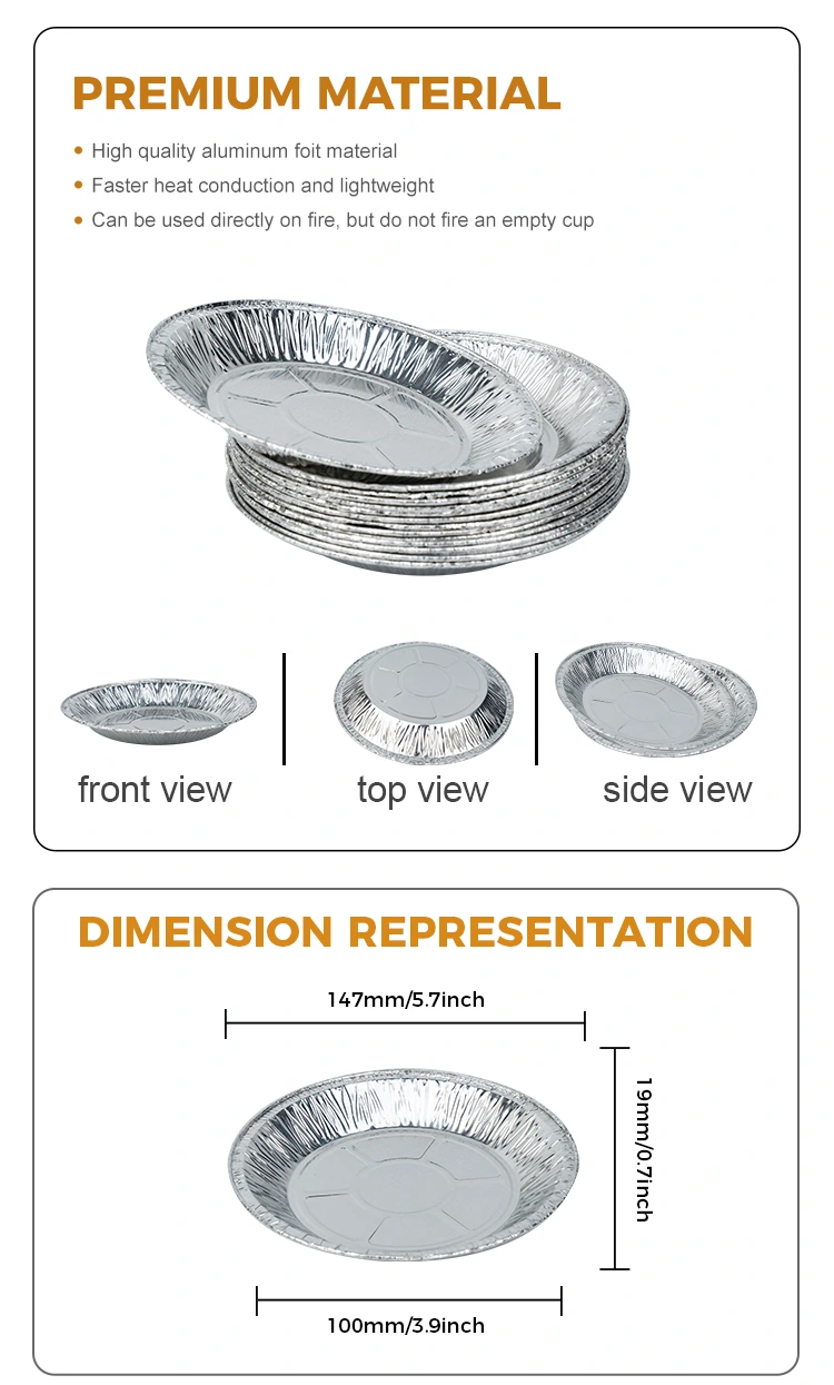 A folha de alumínio do yunchu, alumínio, fritadeira redonda, assando, o recipiente de alimentos de alumínio prateado, que possui as características da higiene e proteção ambiental, é feito de materiais espessados ​​e resistentes à corrosão, não é fácil de se deformar, pode entrar em contato diretamente com os alimentos, não tem medo de alta temperatura, não é queimada ou pasta e não é fácil de ser derramado. Ele pode suportar altas temperaturas de até 250 ° C, tornando-o adequado para vários métodos de cozimento, como assado, forno e churrasco de alta temperatura, sem preocupação. Várias especificações estão disponíveis para atender às diversas necessidades de panificação de tamanhos diferentes, permitindo que você lide facilmente com vários requisitos de produção de alimentos.