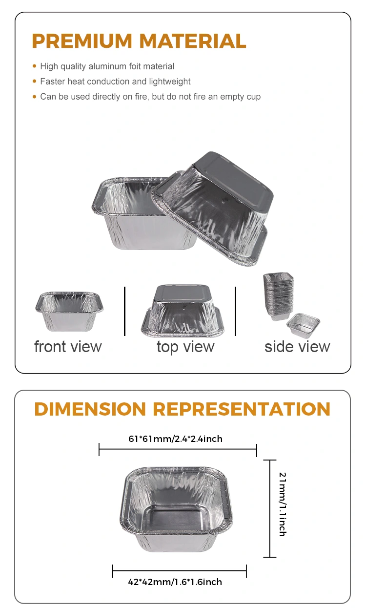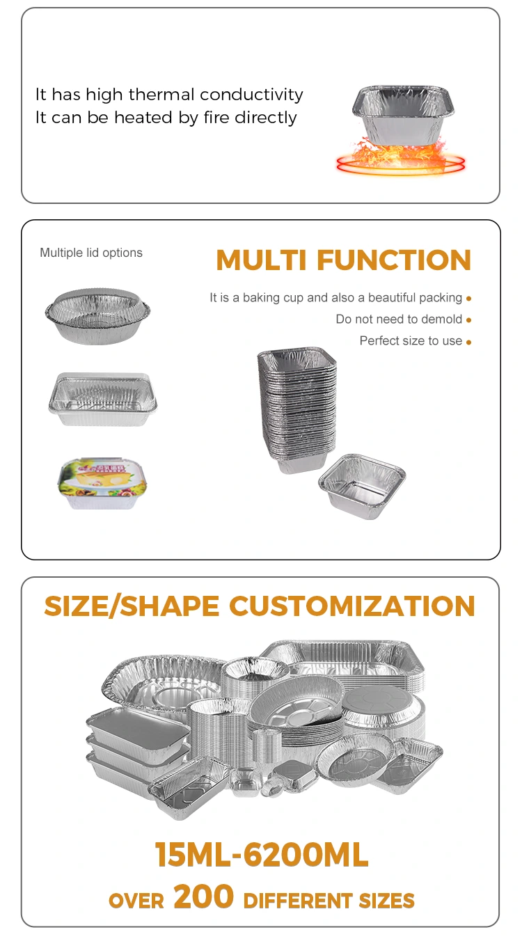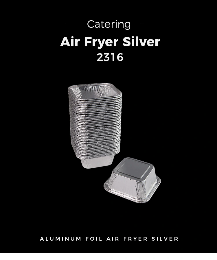 O recipiente de folha de alumínio prateado de fritadeira de ar quadrado usa material de papel alumínio de alta qualidade, que é leve e durável. A parte superior pode ser personalizada com uma tampa transparente de animais de estimação, e a parte inferior tem uma tampa que é espremida e fixada na caixa para impedir que os alimentos grudem na assadeira, que é fácil de liberar e limpar e fáceis de transportar e usar.